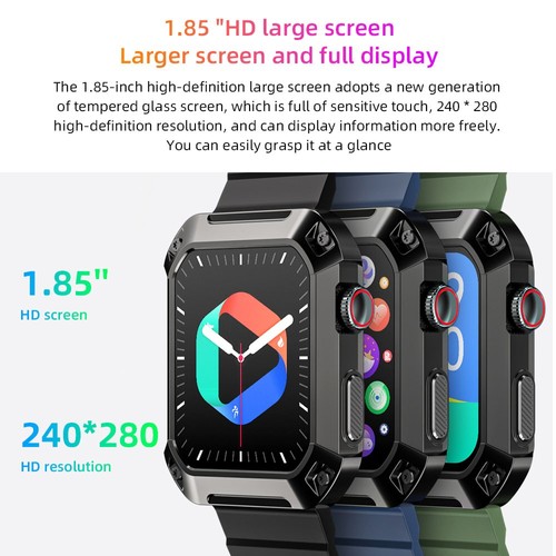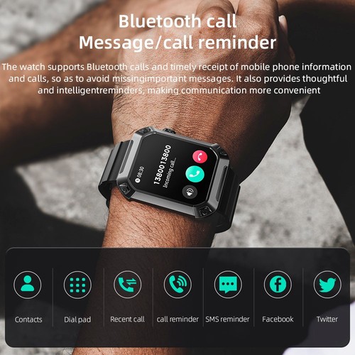 Functions | Health tracker: Decompression sleep aid, heart rate, blood pressure, breathing training, pressure monitoring Alert type: Vibration Other Function: Bluetooth call, AI voice, 8 sets of UI menu, 5MAT waterproof, menstrual period calendar,custom watch face, step counting, brightness adjustment, multi-sport mode, information push, remote music, remote photo, real-time weather, find mobile phone (connected to mobile phone), alarm clock, stopwatch, do not disturb mode, call reminder |